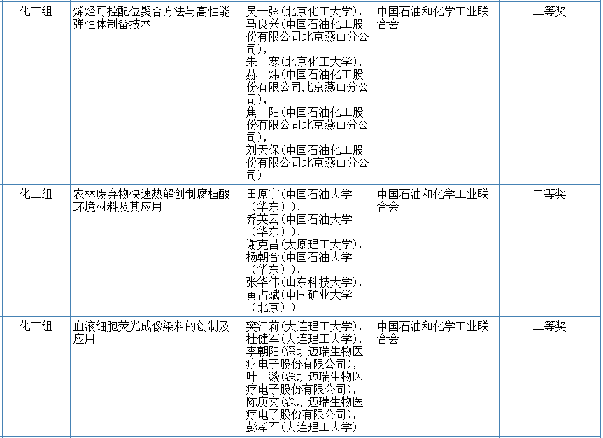 2020年度國家科技進(jìn)步獎初評通過項目(化工組)